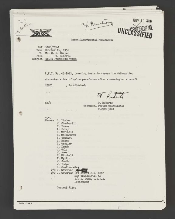 Ref 5185/09/J; RFT 07-5092 for 25201 wants to determine if nyulon chutes are free of permanent deformations found in dacron chutes