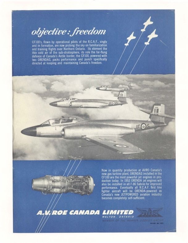 shows 3 x CF-100's JFS, JFO & JFR plus Orenda engine