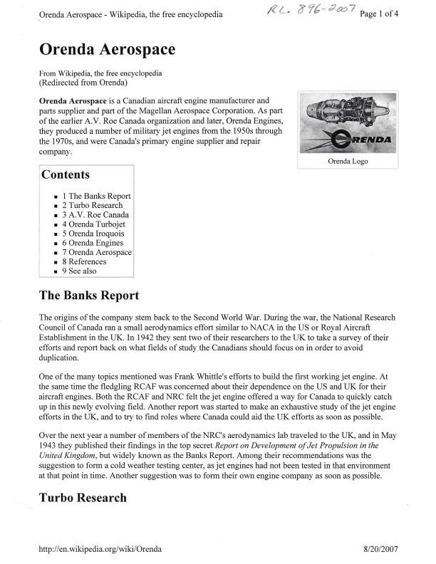 Wikipedia history of Orenda