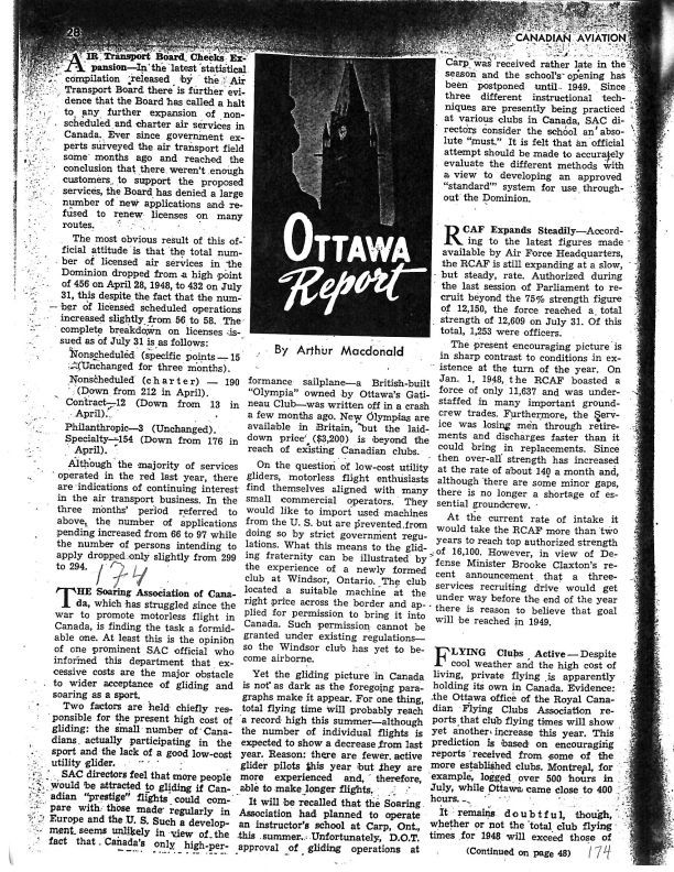 pg 28 Air Transport Board Checks Expansion - An article stating the board witll halt any further scheduled and charter air services in CanadaPublication Details