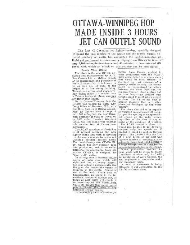 Ottawa-Winnipeg hop made inside 3 hours jet can outfly soundEntry/Object ID