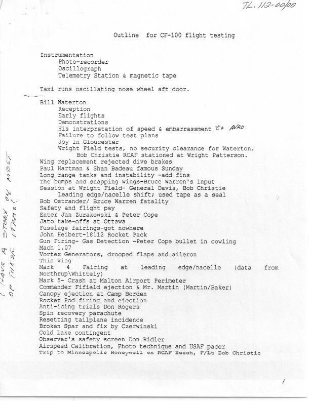 narrative of timeline for flight tests for CF100 Canuck