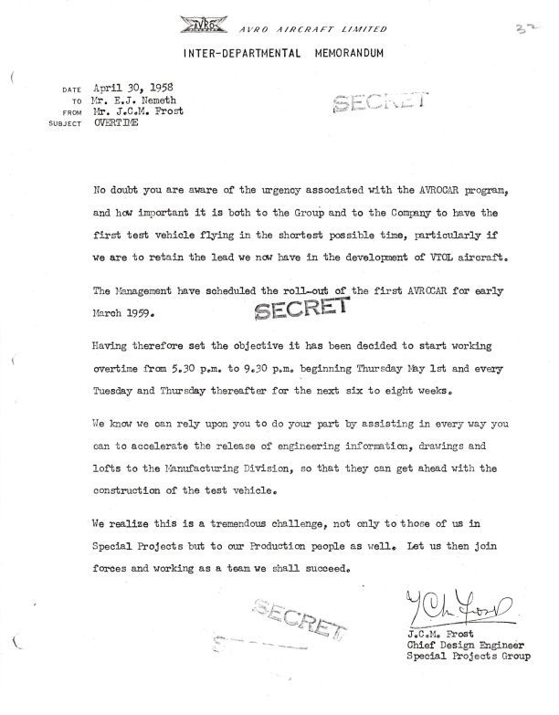 Frost memo to Nemeth outlining future overtime required