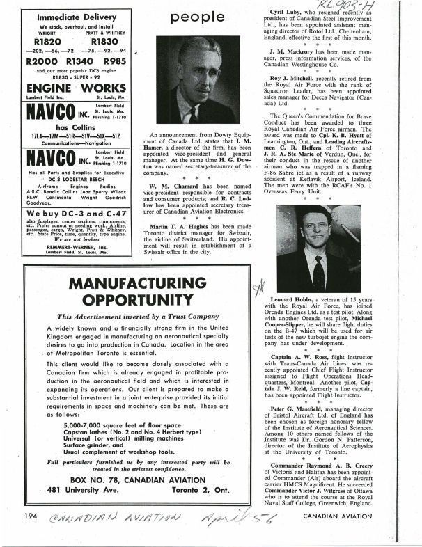 pg 194 Leonard Hobbs joins Orenda as test pilot and Michael Cooper-Slipper to share flight duties on the B-47Publication Details