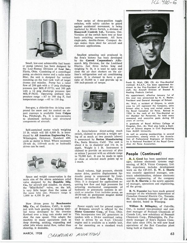 pg 63 R.J. Good appointed manager, defence electronic systems engineering, of RCA Victor Company, Ltd. His experience includes development work on the CF-105.Publication Details