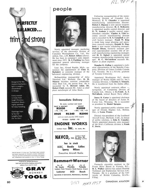 pg. 80 - Lorne Frame appointed public relations manager of Orenda Engines Ltd