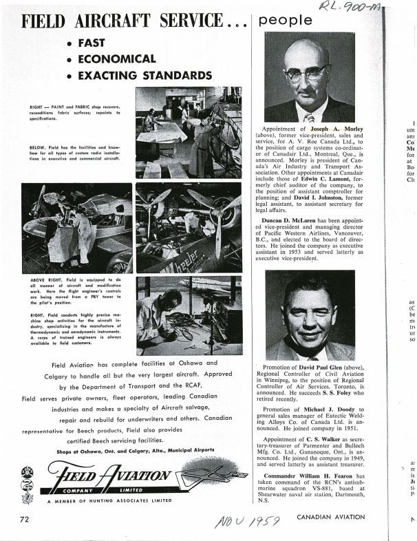 pg 72 Joseph A. Morley former VP sales and service for A.V. Roe Canada Ltd. To position of cargo systems co-ordinator of CanadairPublication Details