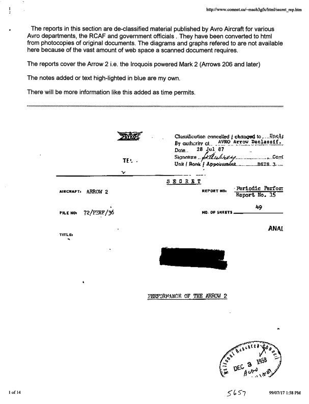 Report on the performance of the Arrow 2 addressing speed,ceiling, rate of climb, time to height, manoeverability, take-off distance,landing distance, stalling speed, and combat mission radius under various supersonic, subsonic and armament parameters. Includes data tables.