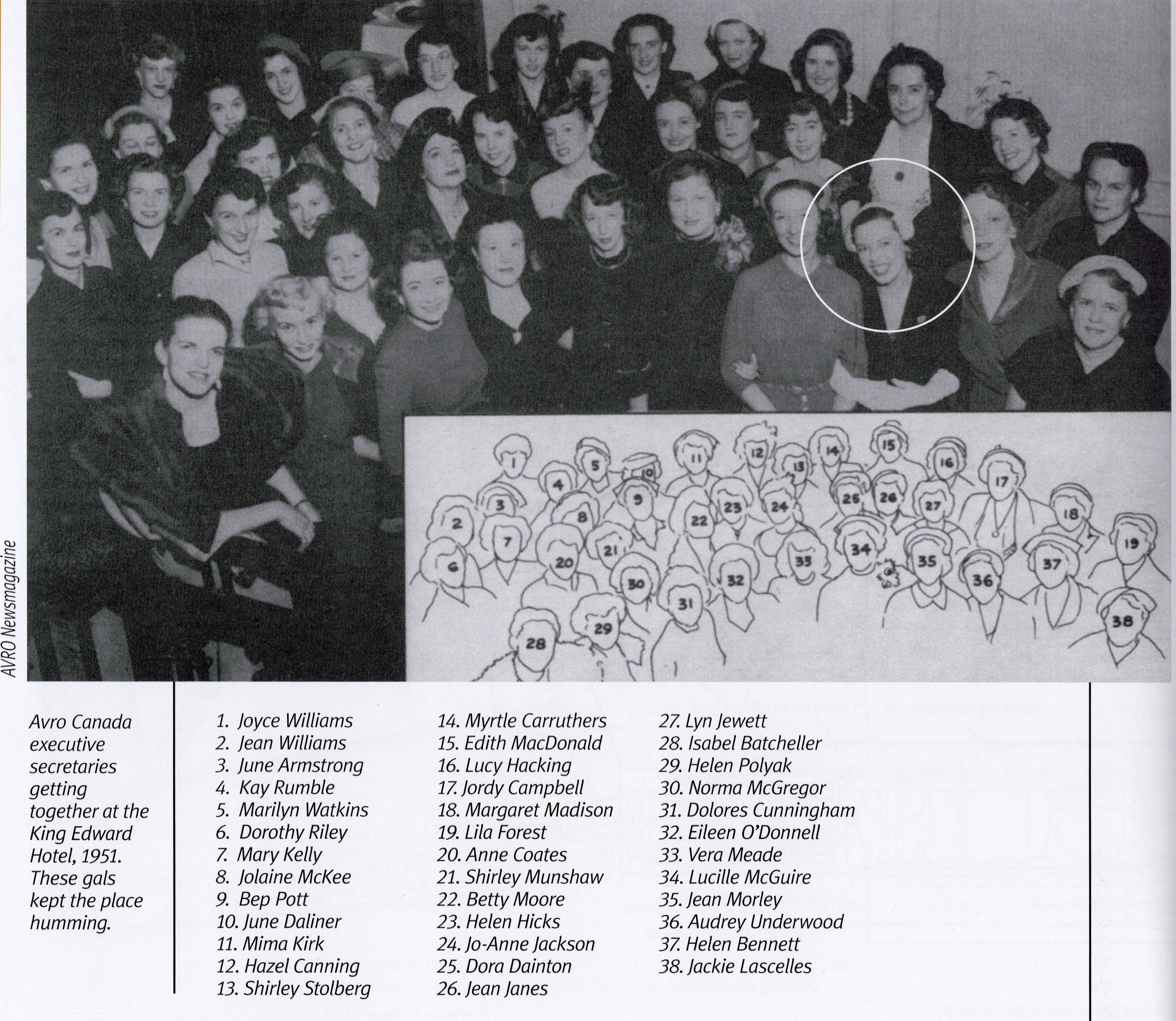 The executive secretaries present were Anne Coates, Audrey Underwood, Bep Pott, Betty Moore, Clair Bain, Dolores Cunningham, Dora Dainton, Doris Bridge, Dorothy Dointon, Dorothy Riley, Edith MacDonald, Eileen O’Donnell, Elizabeth McGrath, Greta Hoar, Hazel Canning, Helen Bennett, Helen Grand, Helen Hicks, Helen Polyak, Helen Ronald, Isabel Batcheller, Jackie Lascelles, Jean Cronie, Jean Janes, Jean Morley, Jean Williams, Jo Lindow, Jo-Anne Jackson, Jolaine McKee, Jordy Campbell, Joyce Williams, June Armstrong, June Daliner, Kay Rumble, Kay Terry, Lena Benbow, Lila Forest, Lois MacMillan, Lucille McGuire, Lucille Patterson, Lucy Hacking, Lyn Jewett, Margaret Madison, Marilyn Watkins, Mary Kelly, Maureen McKay, Mima Kirk, Myrtle Carruthers, Myrtle Haughlon, Norma McGregor, Shirley Munshaw, Shirley Stolberg, Vera MeadeGeneral Notes
