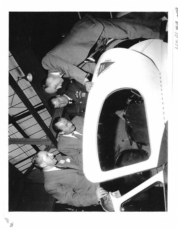 Photo of 4 Test Pilots looking into Cockpit of Arrow