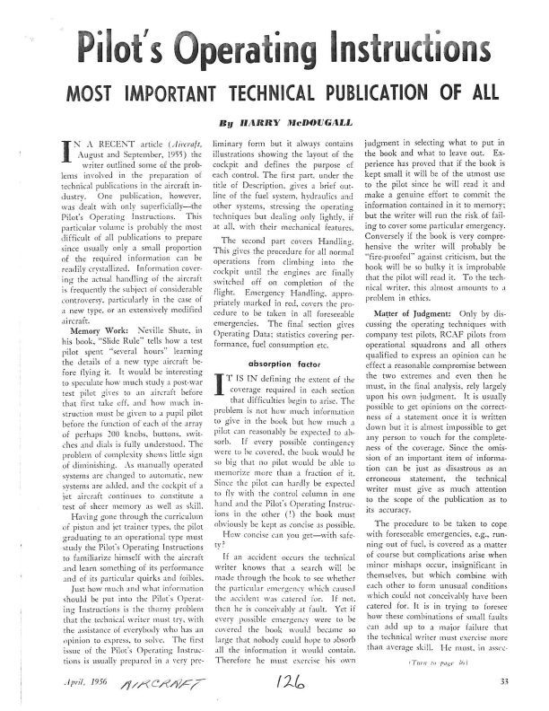 Pages 33, 36, 38 and 81-Genaral article describing the importance of preparing the Pilot's Operating Instruction document for all pilots. There is a sidebar article on Page 38 mentioning Frank Brame as the winner of the Canadair Ltd. Trophy as Canadian Soaring ChampionPublication Details
