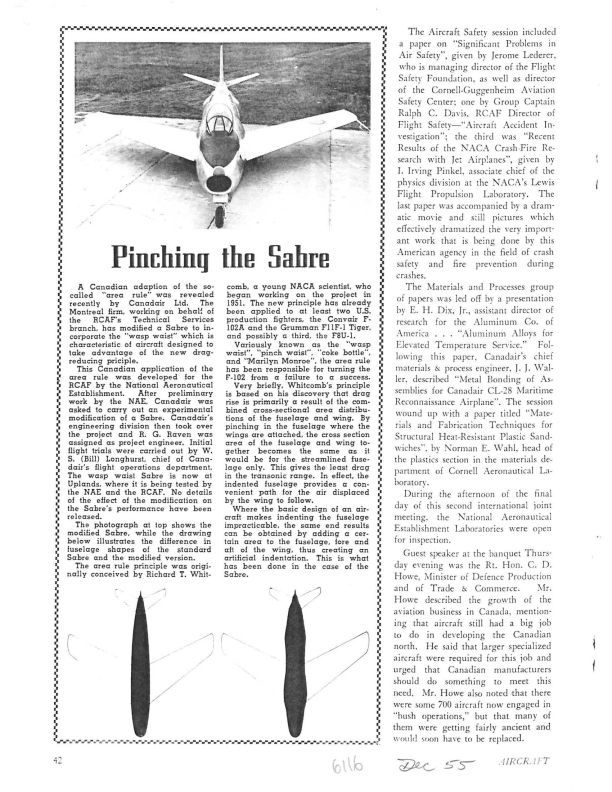 pg 42 - sectional area distributions of the air frame and wings. Known as: “the Area Rule”, pinch waist,coke bottle, “Marilyn Monroe”Publication Details