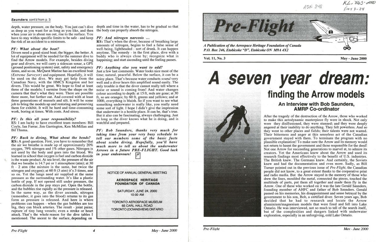 A seven year dream: finding the Arrow models - Interview with Bob Saunders about Scuba Diving to recover Arrow Models in Lake OntarioPublication Details