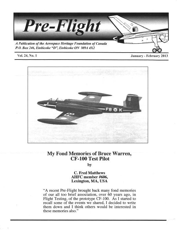 My Fond Memories of Bruce Warren, CF-100 Test Pilot - Part 1Publication Details