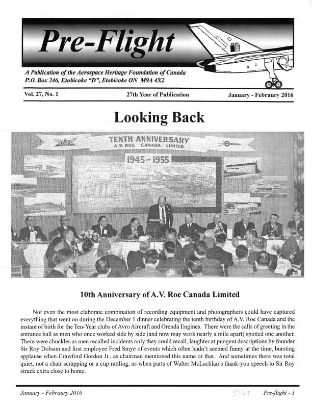 This issue concludes a report on the celebration of the 10th anniversary of A.V. Roe Canada Ltd. in 1955. Includes Anniversary; Ten-Year Club; Canadian Car and Foundry Ltd.; Canadian Steel Improvement Ltd.; Victory Aircraft; Frank Spriggs; Turbo-Research; Lancaster. Other names include C.D. Howe. Roy Dobson, Fred Smye, Crawford Gordon, Walter McLachlan, Jack Hilton, John Tory, Wilf Curtis.Publication Details