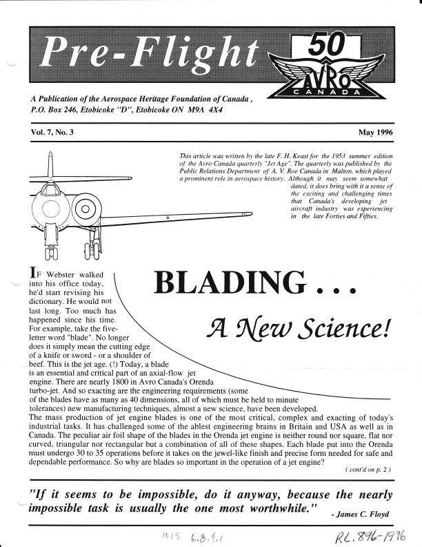 Blading - Description of how an Orenda jet engine works . Originally written in 1953 by Harry Keast for the Avro Canada quarterly. Pages 1 - 4Publication Details