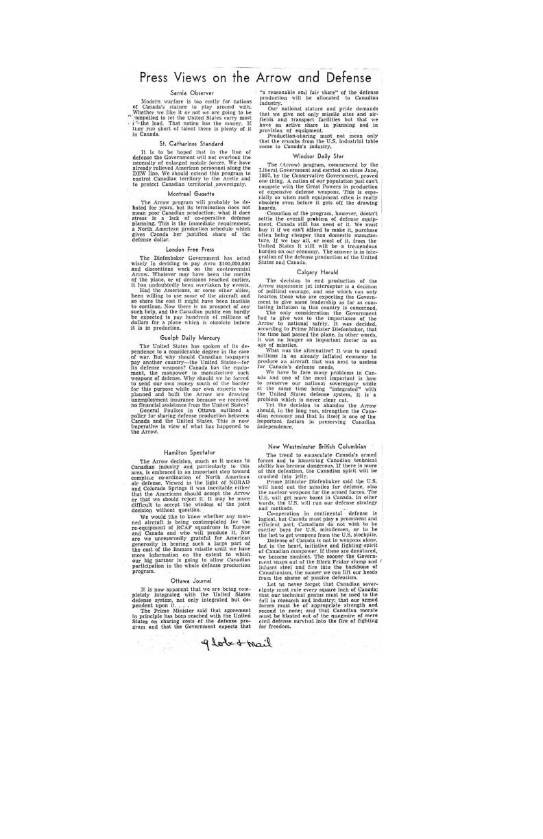 Press views on the Arrow and Defense