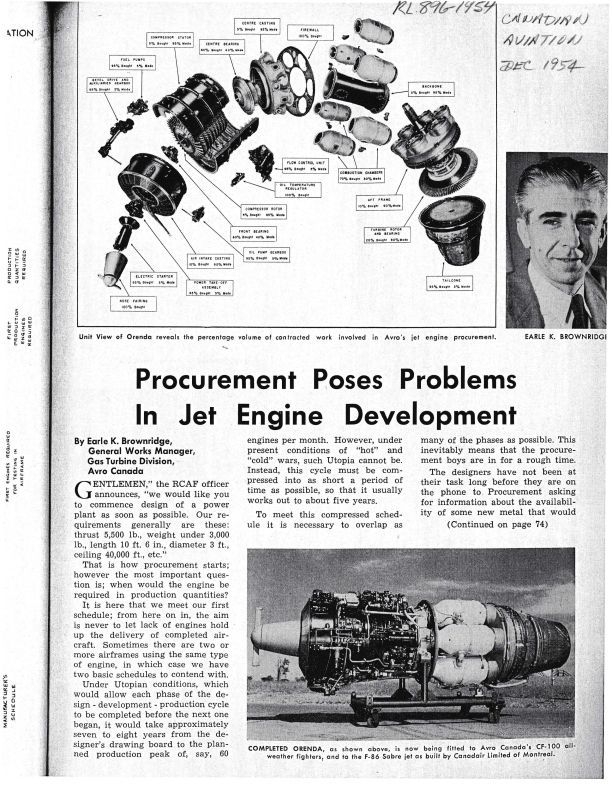 pages 49, 50, 74, 76 - A description of the procurement process - includes unit (exploded) view of Orenda Engine, Completed Orenda, image of Earle K. BrownridgePublication Details