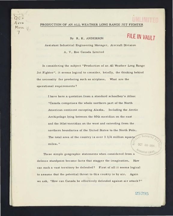 Date / Time Period: 10/20/54 Pages: 13 Author: Anderson, R. K.|Roe, A. V.