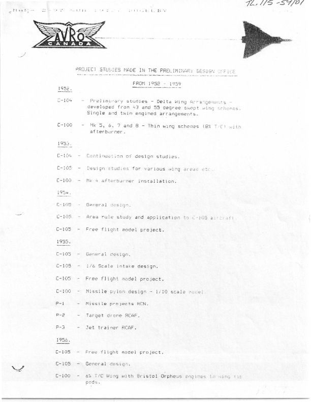 Project Studies Made in the Preliminatry Design Office From 1952-1959 (of Avro Canada)