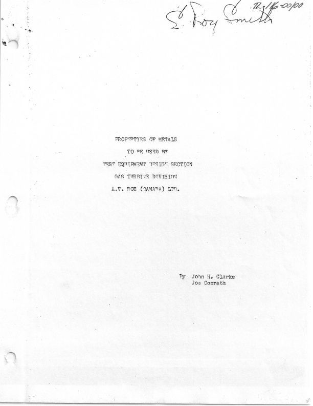 Properties of Metals to be used by test equipment design section - Gas Turbine Division A.V. Roe (Canada) Ltd.