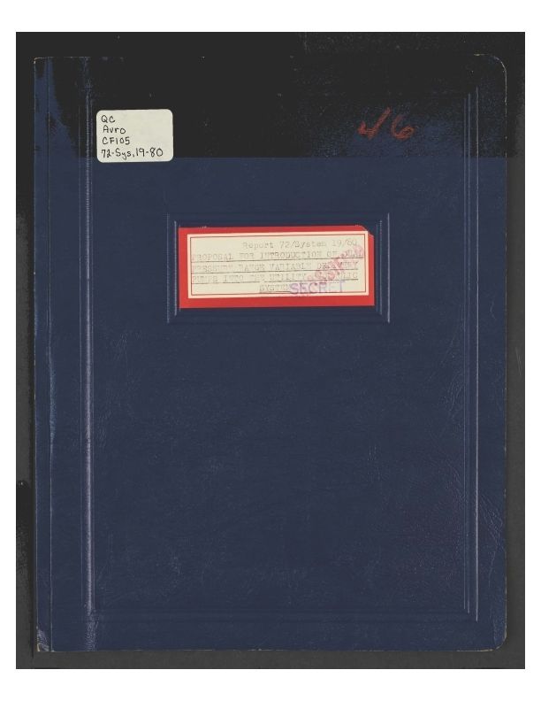Report proposing to replace the constant pressure hydraulic pumpig system with dual pressure pumps serving the utility hydraulic and radar scanner systems for the Arrow. Names include G. Eyolfson, C. Marshall, J. Moors, D. Royston, W. M. Vance.