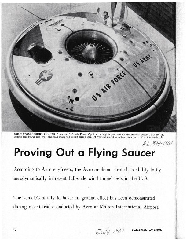 Description written by Chief Design Engineer, pg. 14-19 (Avrocar)