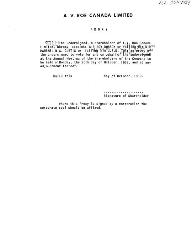 Proxy Form for 1959 Annual Meeting of A.V.Roe Canada Limited