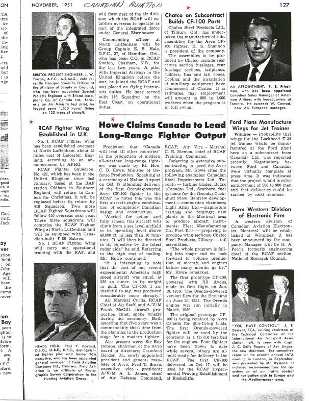 RCAF Fighter wing in UK; Howe claims Canada to lead Long-Range Fighter Output; Chatco to build CF-100 partsEntry/Object ID