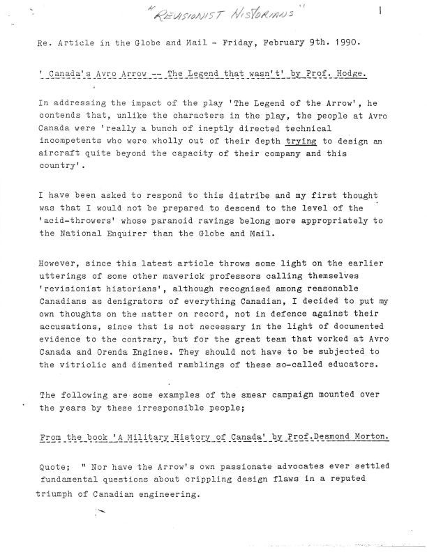 Revisionist Historians - reponding to "Canada's Avro Arrow -- The legend that wasn't"