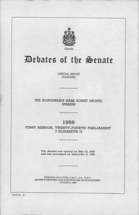 Senate Debates May 12 to Sept 6, 1958Entry/Object ID