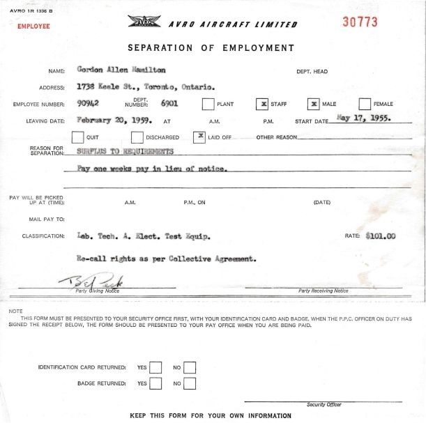Separation of Employment - Gordon Allen Hamilton