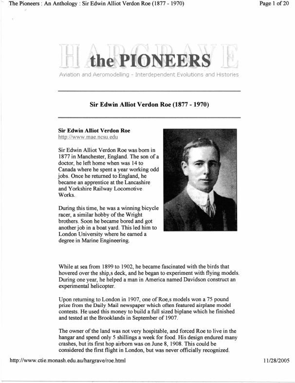 History of AV Roe, the man