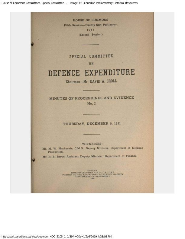 Special Commottee on Defence Expenditure No 2- Minutes and Proceedings Dec 6 1951