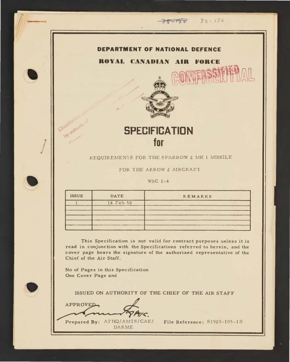 Specification for requirements for the Sparrow 2 MK 1 missile for the Arrow 2 aircraft (WSC 1-4)