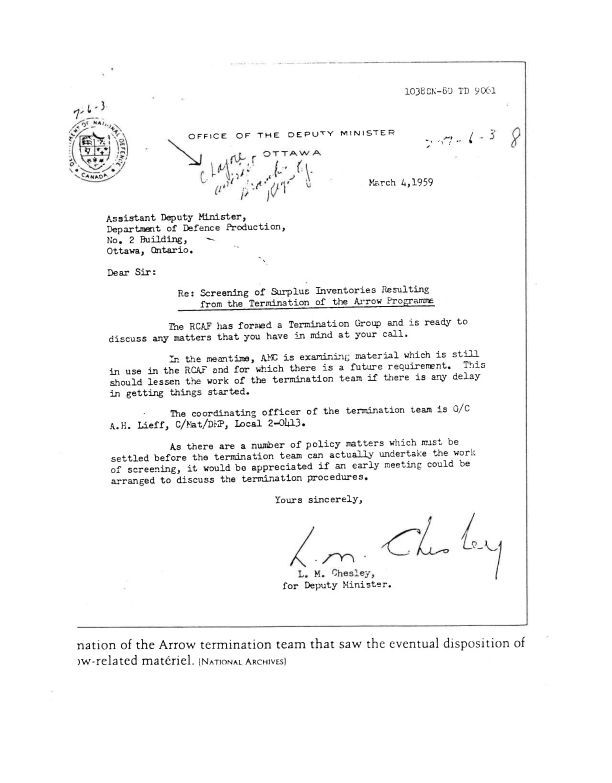 RCAF forms termination group to screen Arrow components prior to disposal or re-use
