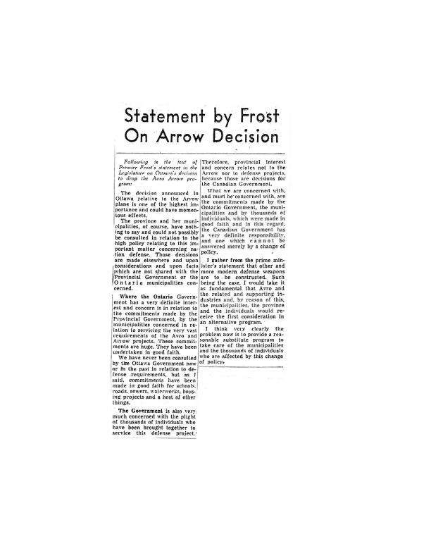 Statement by Frost on Arrow decision