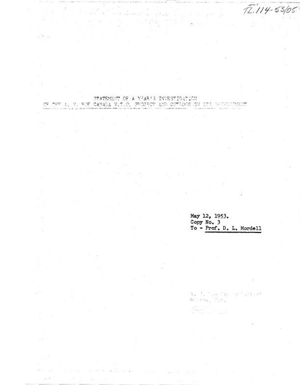 Statement of a Year's Investigation of A.V. Roe Canada V.T.O. Project