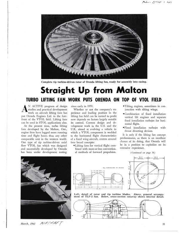 Straight up from Malton - Turbo lifting fan work puts Orenda on top of VTOL field