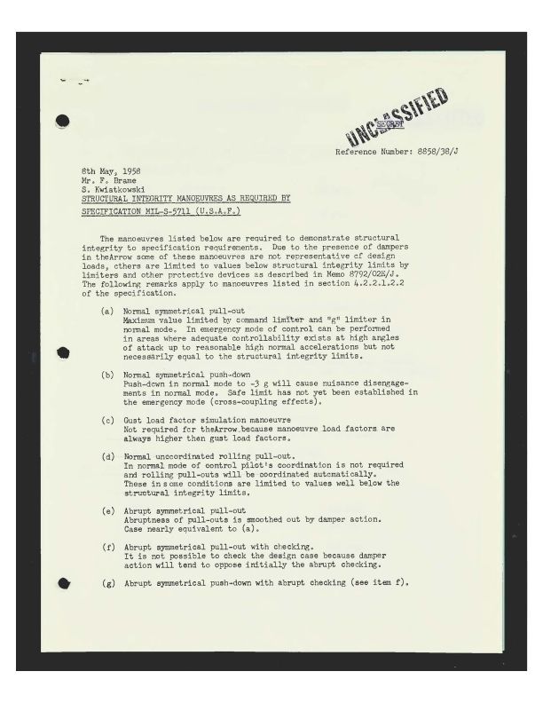 Structural Integrity Manoevres as required by Specification MIL-S-5711 (USAF)