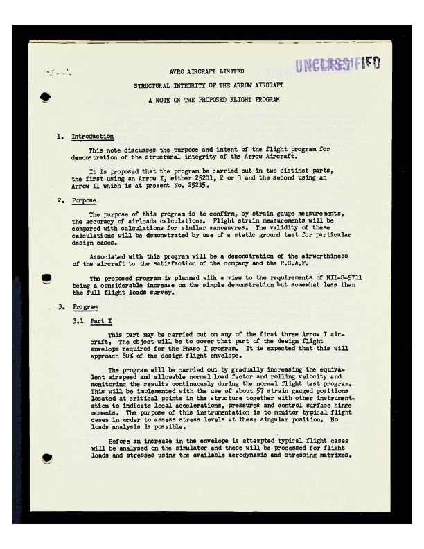 Structural Integrity of the Arrow Aircraft: A note on the proposed flight plan