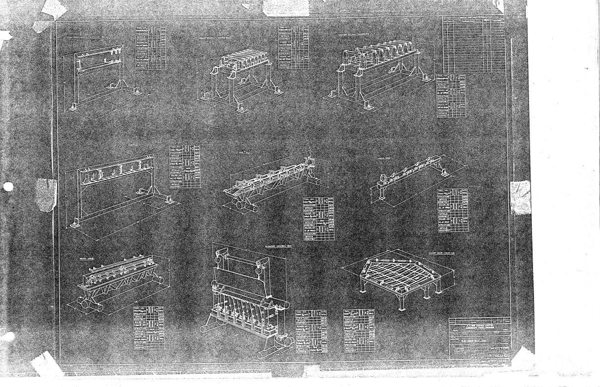 Sub assembly jigs, Drawing PE-7-1062-1-AJ-1 showing nine jigs