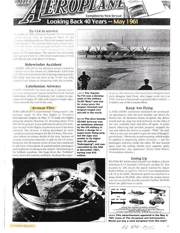 Avrocar Flies - Incorrect story of flight, never got over 4'; developed by Avro Canada as tactical weapon for US ArmyPublication Details