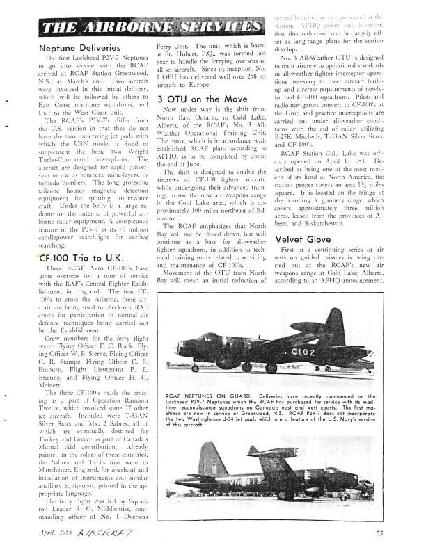 pg 55 - CF-100 Trio to UK - Three planes to UK for RAF support; 3 OUT on the move - Cold Lake getting new planes that will use the weapons rangePublication Details