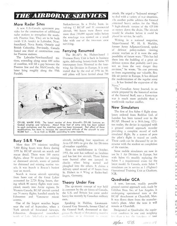 pg 96 - CF-100, Mark Five - Picture and short description of differences between Mark 4 and 5. pg 97 - Helped or Hindered? - CF-100 forced down by USAF.General Notes