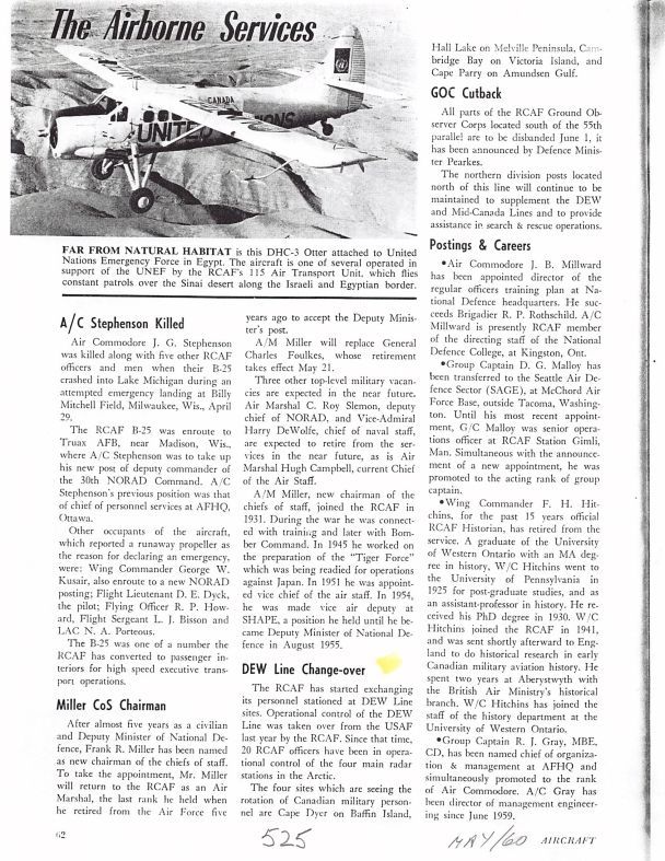 Page 62 - DEW Line Change-over - The RCAF took over the operation of the Dew Line from the USAF in Feb 1959 and since that time 20 RCAF officers have been in operational control of the four main radar stations in the Arctic.General Notes