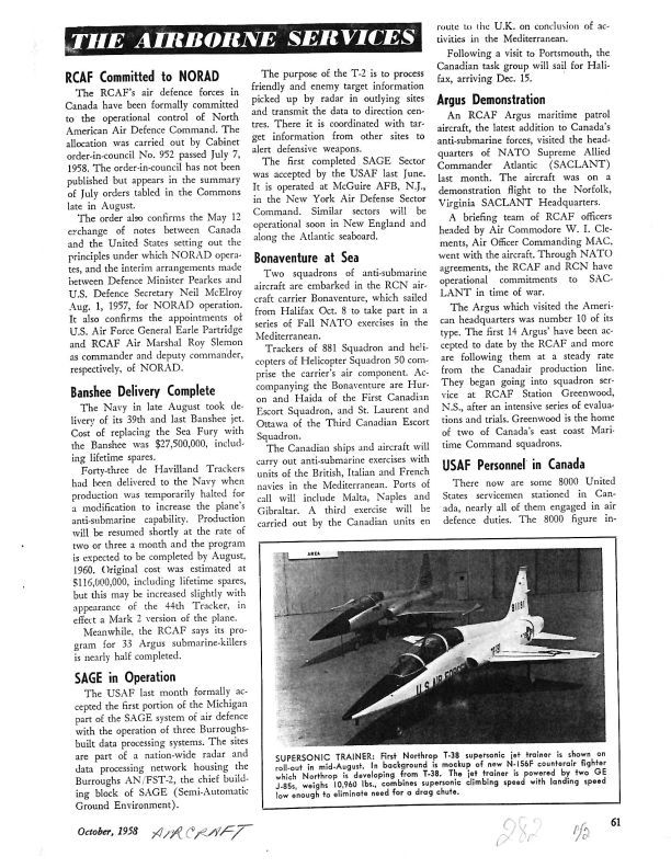 Pg 61, 62 RCAF Committed to NORAD. An article detailing that the RCAF have been formally committed to the operational control of NORAD. USAF Personnel in Canada An article detailing that currently there are 8000 USAF personnel in Canada with potentially another 4000 for aid in refueling SAC aircraft.Publication Details