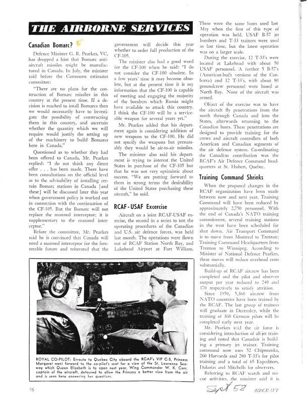 pg 56 Canadian Bomarc? - Defence Minister mentions status of Bomarc manufacture in Canada, and he is trying to interest the US in purchasing the ArrowGeneral Notes