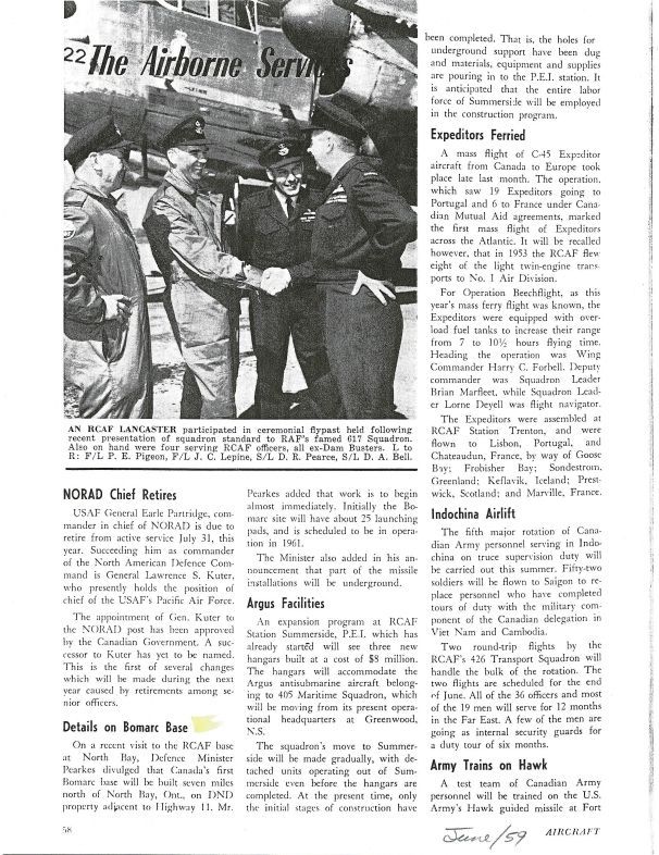 From Aircraft 1959 Jun pg 58 - Details on Bomarc Base - Pearkes announces base to be north of North Bay