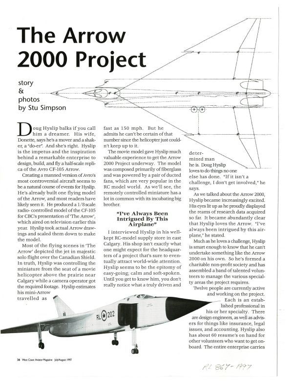 Arrow Replica from Westcoast Aviator July/August 1997 pgs 36-38Publication Details